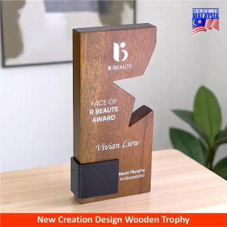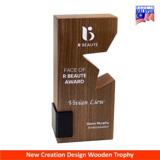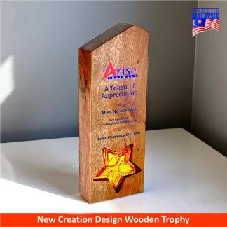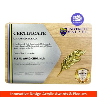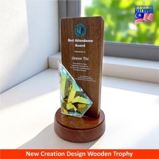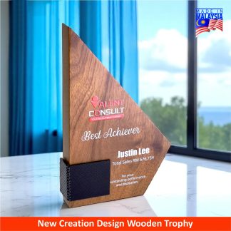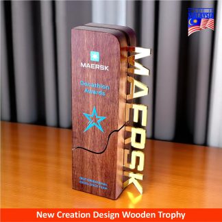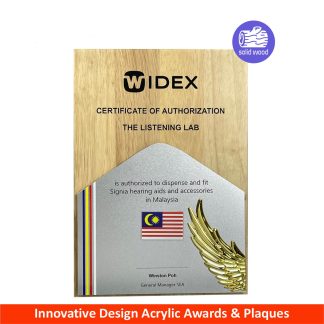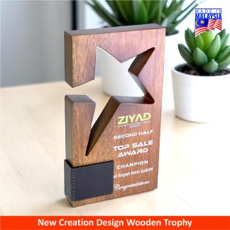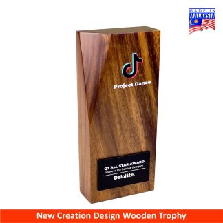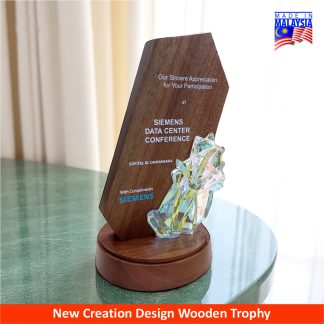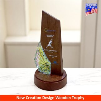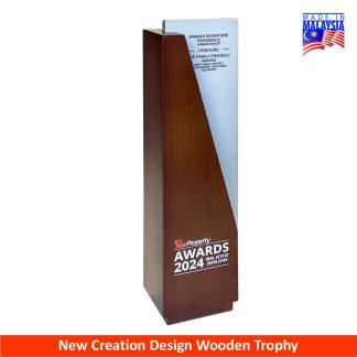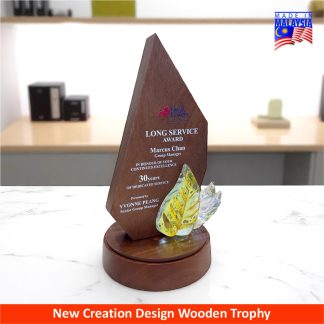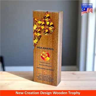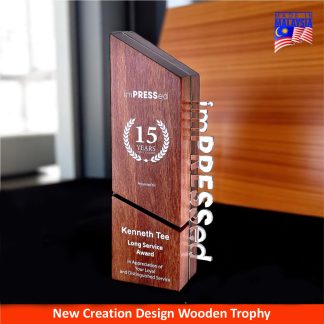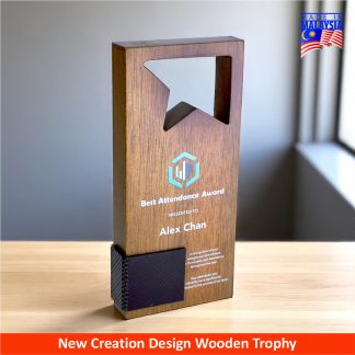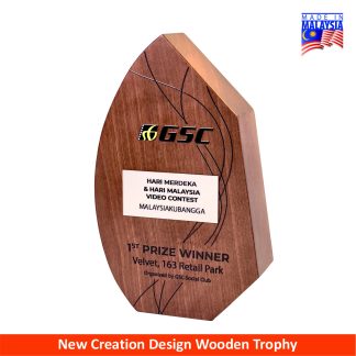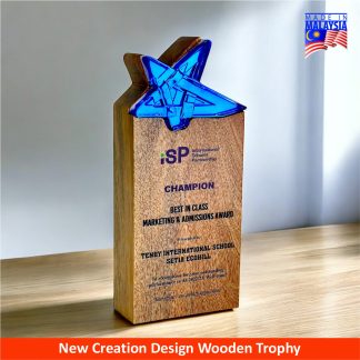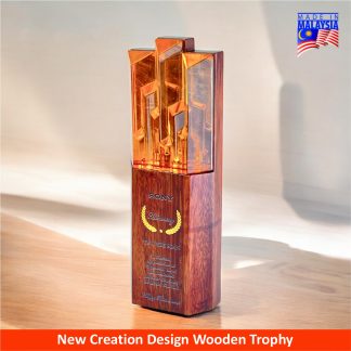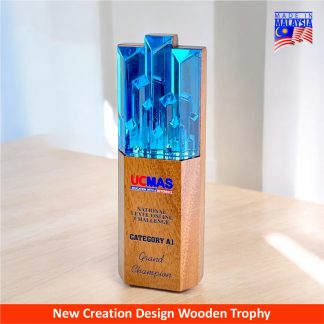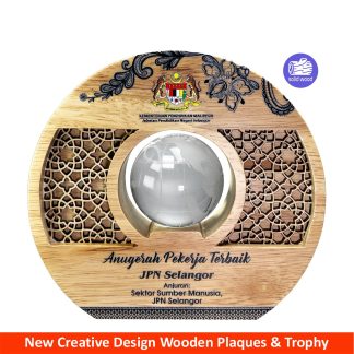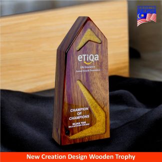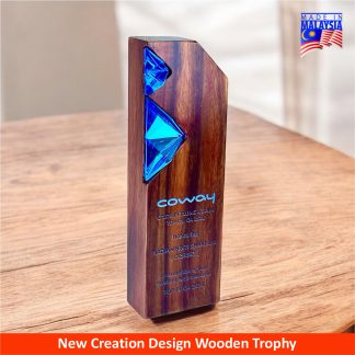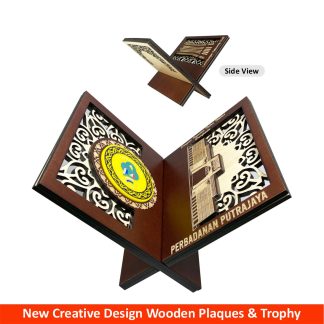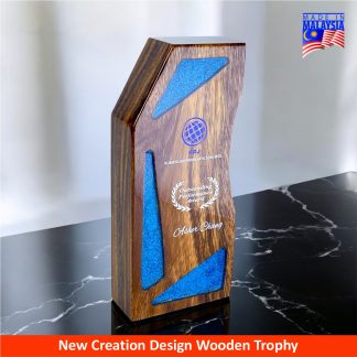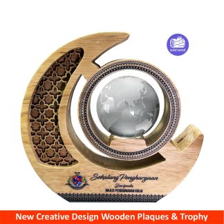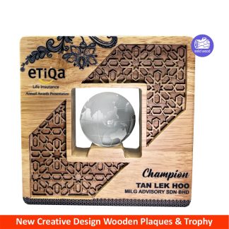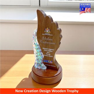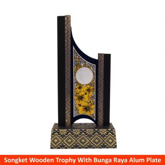 EP303 Songket Wooden Trophy with Bunga Raya Aluminum Plate (MAROON / BLUE)