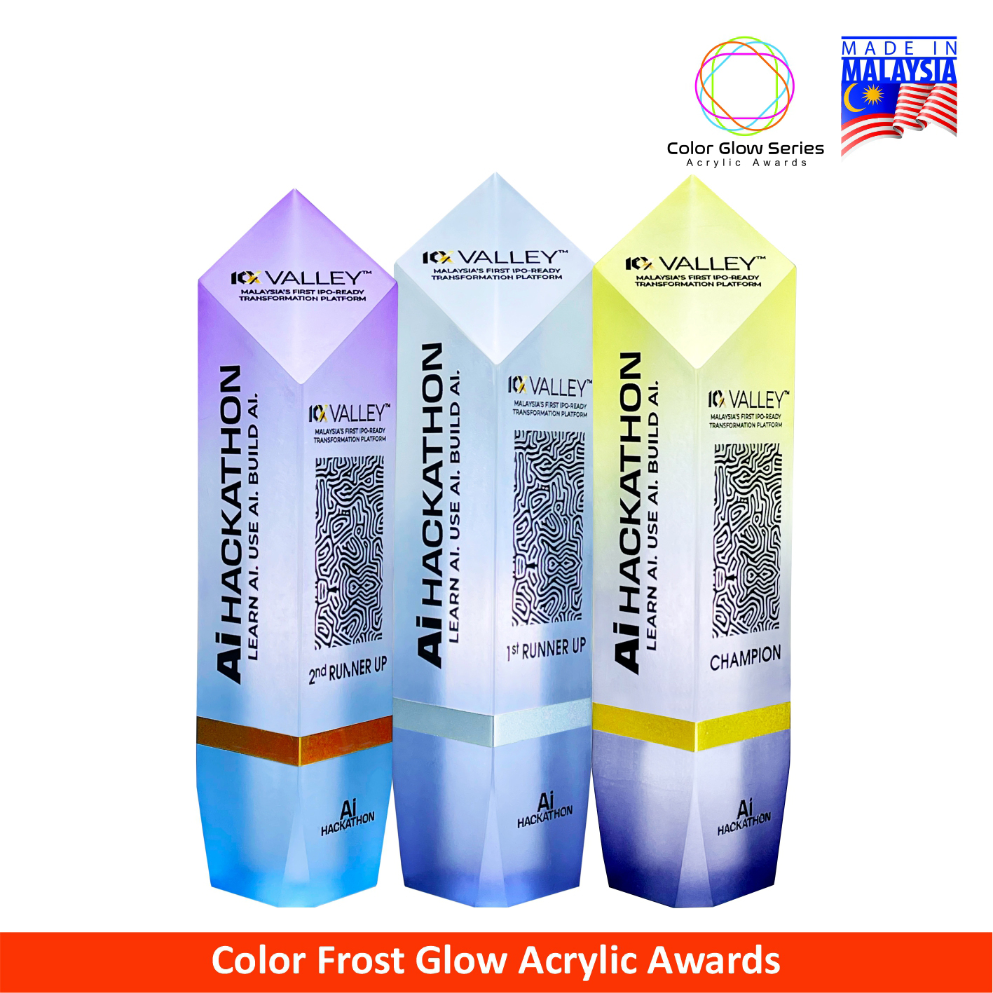 1042 (GOLD / SILVER / BRONZE) – Frost Color Glow Acrylic Award – 240mm * 48mm * 48mm ( RM 283.50 )