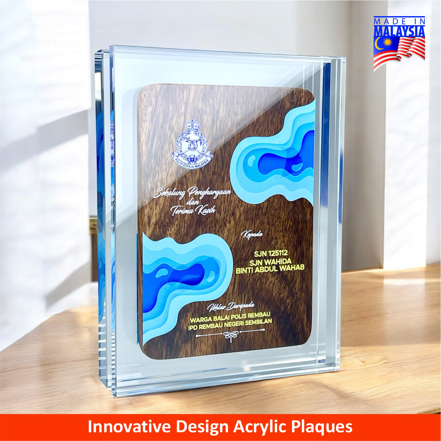 5233 – Innovative Design Acrylic Plaque – 200mm * 150mm * 38mm ( RM 202.50 )
