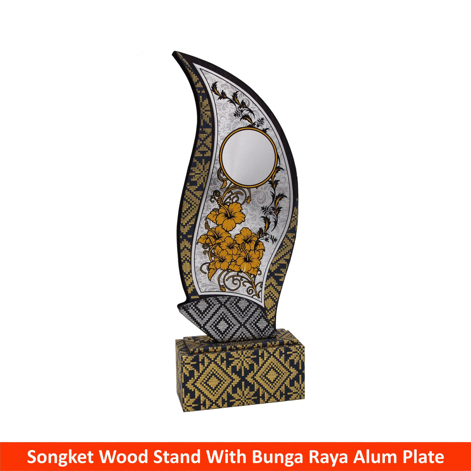 EP311 Songket Wood Stand with Bunga Raya Aluminum Plate (MAROON / BLUE)