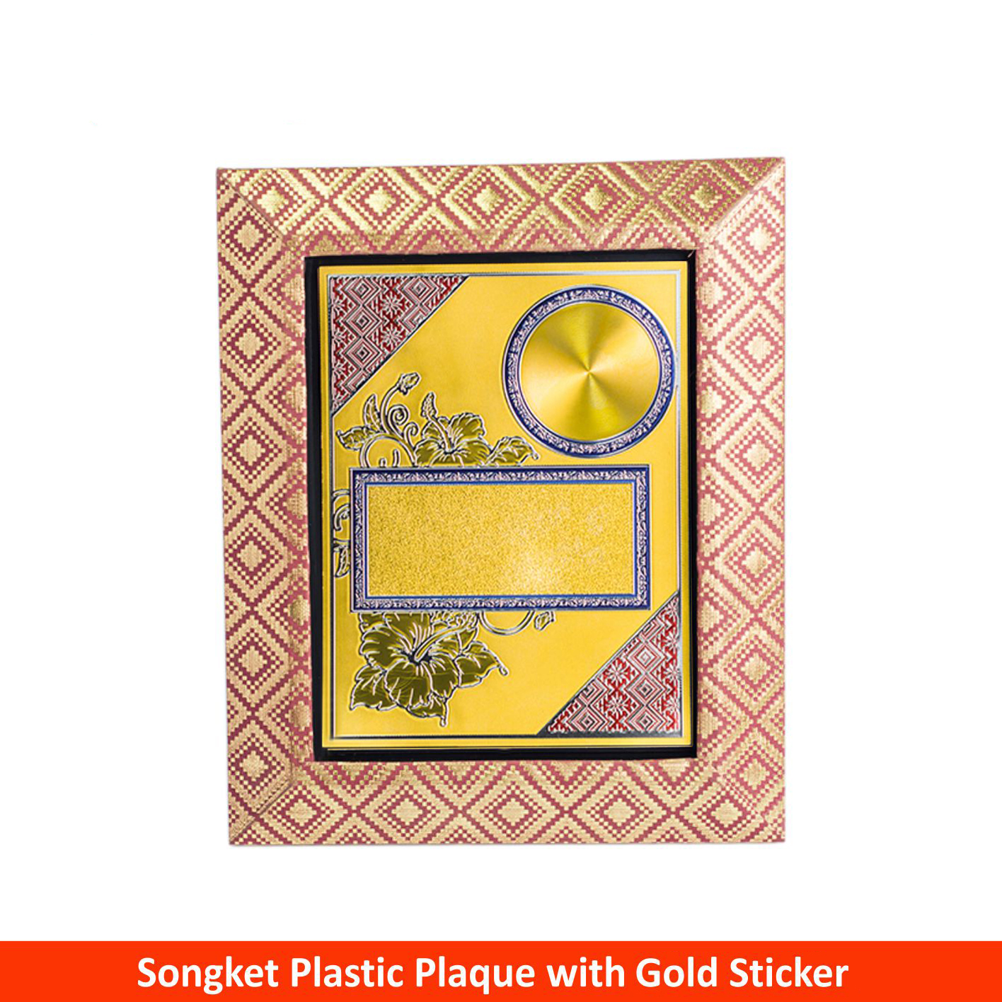 EP626 – Songket Plastic Plaque With Gold Sticker (Maroon) – 193mm * 160mm * 0mm (RM 38.50)