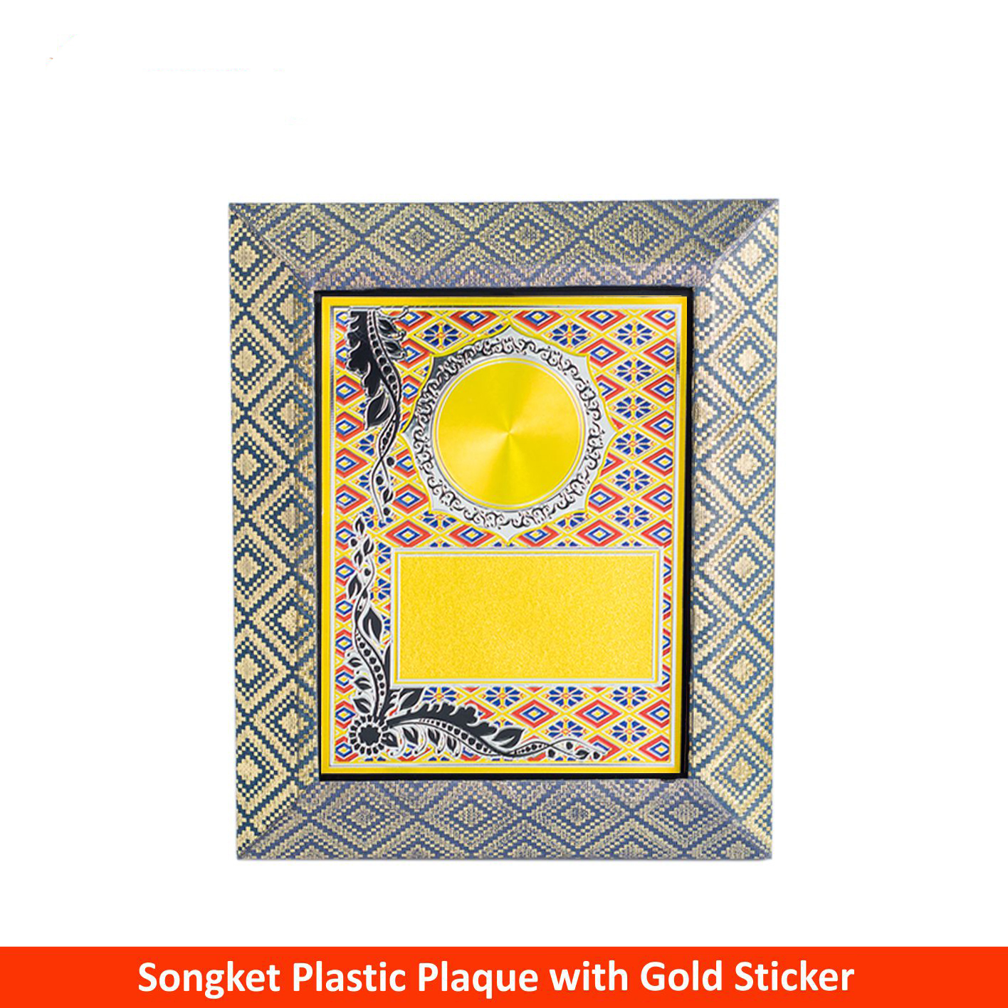 EP627 Songket Plastic Plaque with Gold Sticker (BLUE)