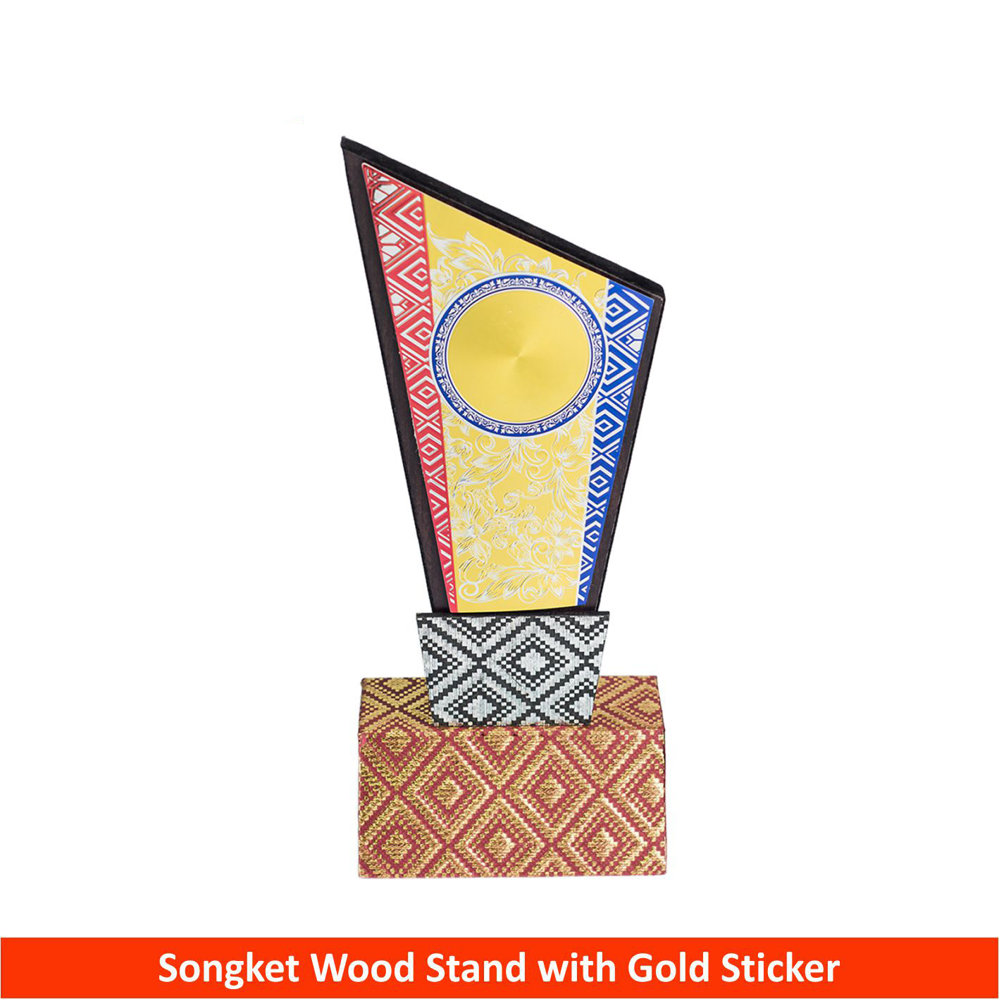 EP677 Songket Wooden Stand with Gold Sticker (MAROON)