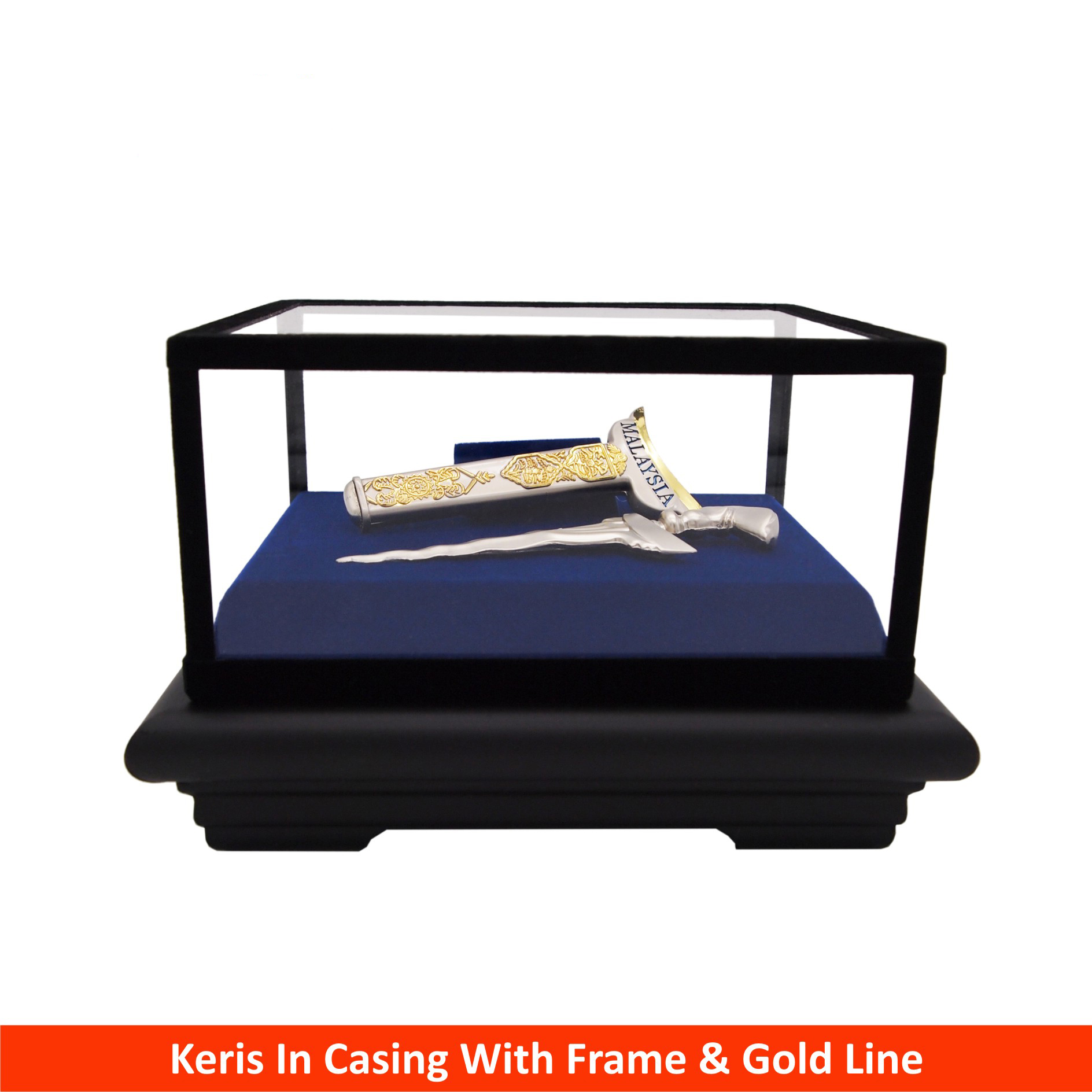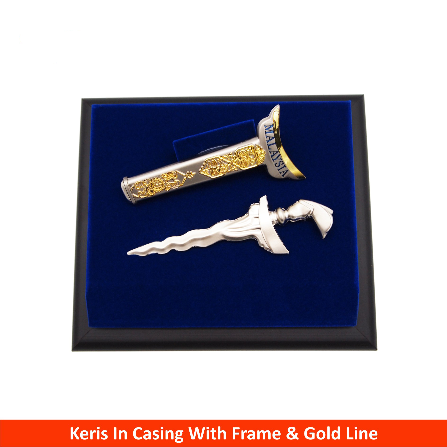 EP7044 – Keris In Casing With Frame & Gold Line (Blue) – 135mm * 150mm * 100mm (RM 380.00)