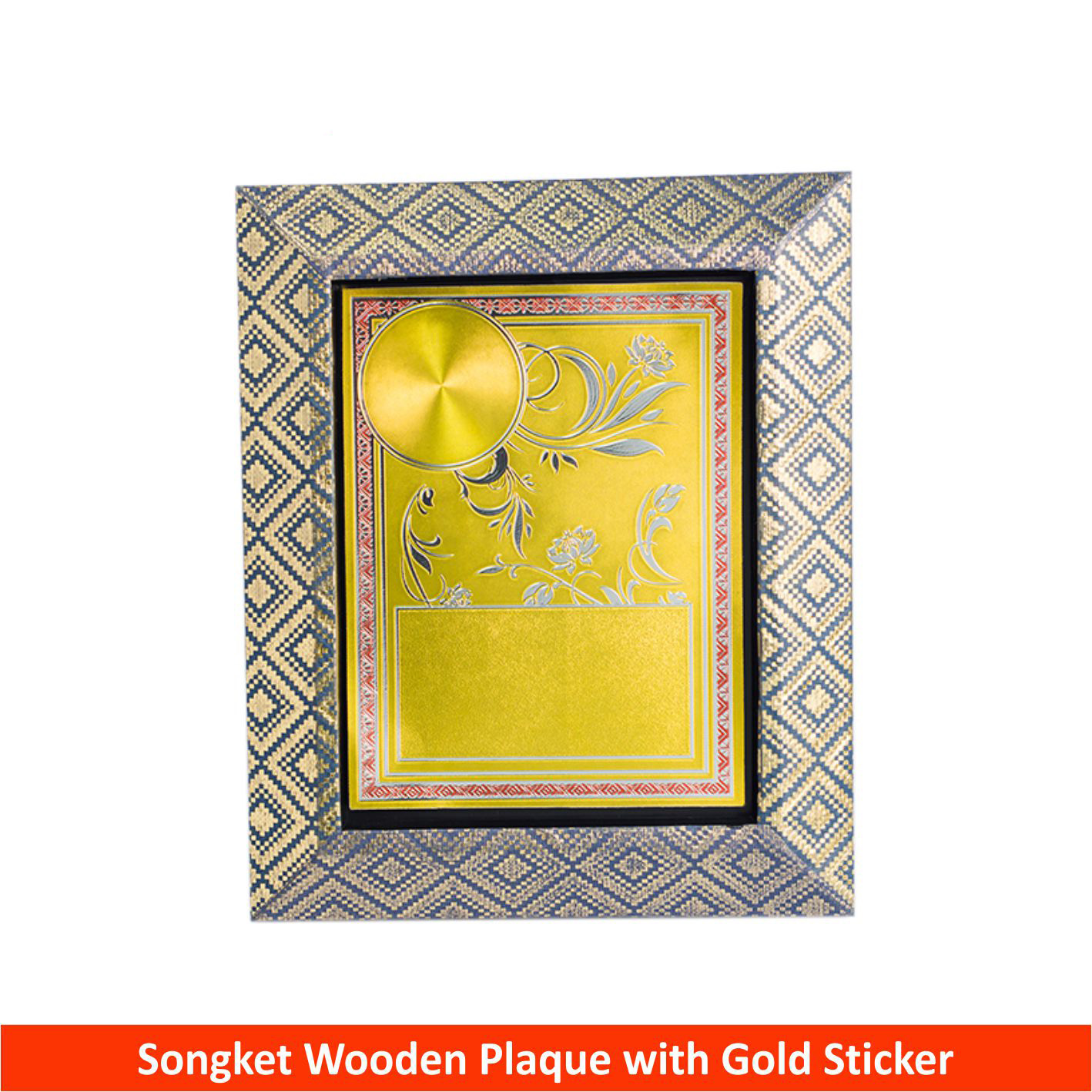 EP707 – Songket Plastic Plaque With Gold Sticker (Blue) – 193mm * 160mm * 0mm (RM 38.50)