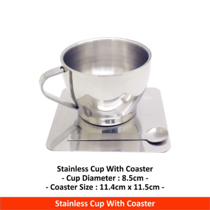 Stainless Cup With Coaster – 115mm * 114mm * 0mm ( RM 28.00 )
